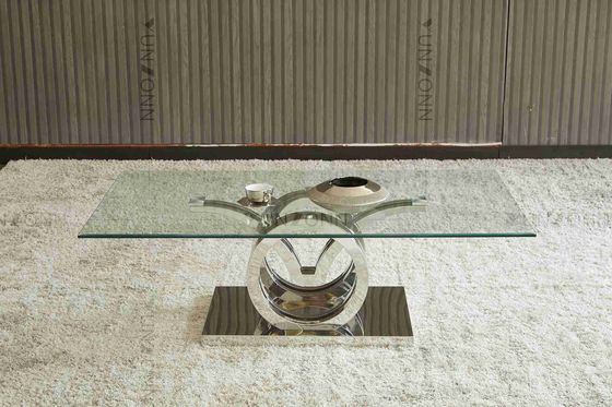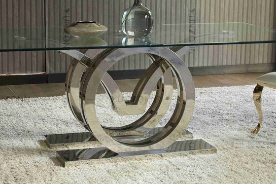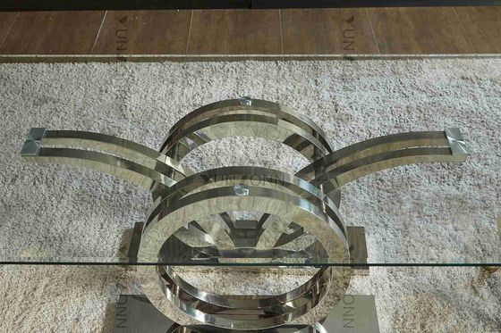Thiết kế Seagulls Cơ sở bằng thép không gỉ Mặt kính trên cùng Khung bàn ăn màu bạc