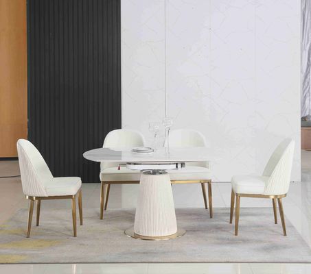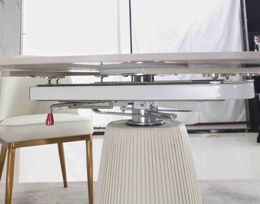 Bàn tròn gấp theo hợp đồng kính thiên văn màu trắng có thể mở rộng với 6 chỗ ngồi cho phòng ăn