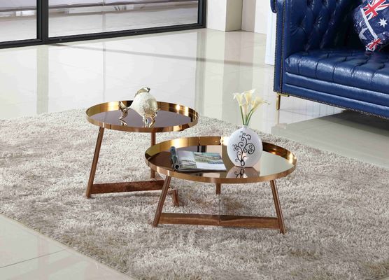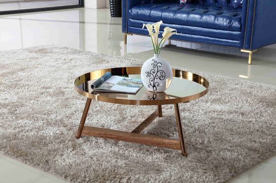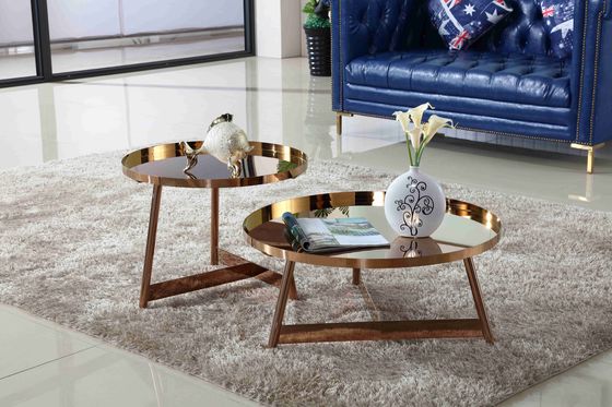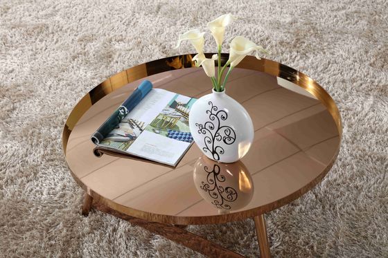 Thiết kế nội thất sang trọng Khung thép không gỉ Bàn cà phê tròn vàng hồng sáng cho nội thất phòng khách