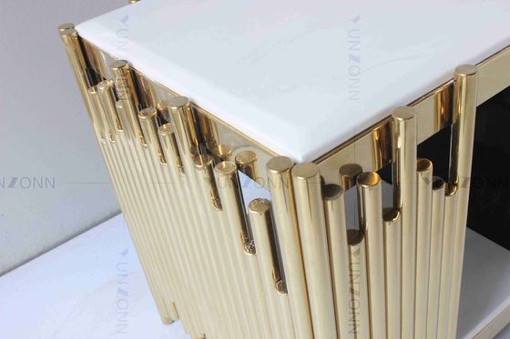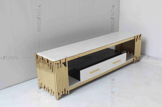 Bàn Tv vàng sang trọng Bàn bằng đá cẩm thạch trắng Hàng đầu bằng thép không gỉ có ngăn kéo cho phòng khách