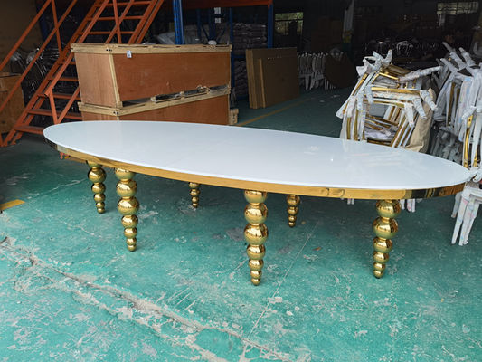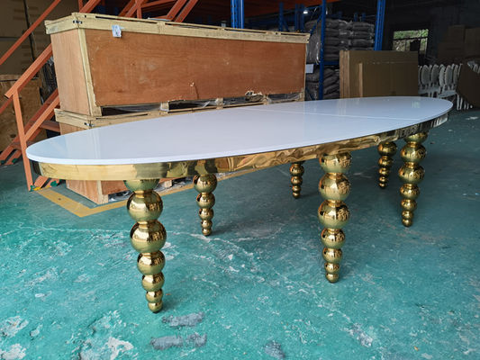 Kích thước của bàn tiệc này có thể được tùy chỉnh, và chúng tôi có thể cung cấp các dịch vụ tùy chỉnh.Chiếc bàn này có thiết kế hình quả trứng, mặt bàn làm bằng ván MDF mật độ trung bình, chân tô điểm vàng bóng khiến toàn bộ không gian tiệc cưới hay sảnh tiệc đều hiện lên hiệu ứng vàng rực rỡ.Nó là sự lựa chọn yêu thích của khách hàng ở các nước Trung Đông.