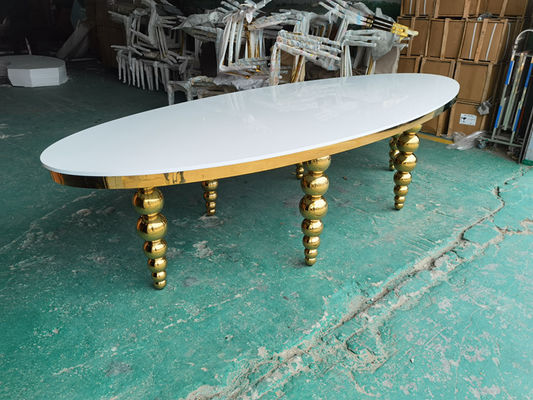 Bàn tiệc MDF hình bầu dục Ss chân vàng bóng