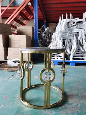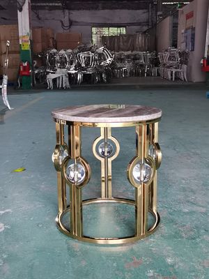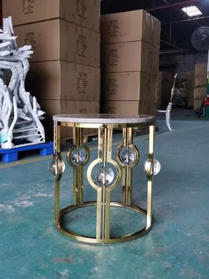 Mặt bàn bằng đá cẩm thạch bằng thép không gỉ mạ vàng ánh sáng bằng kim loại pha lê sang trọng Bàn góc tròn