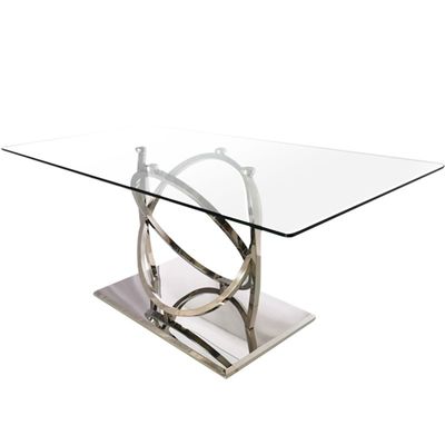 Bàn ăn kim loại bạc sang trọng với kính trong suốt cho phòng ăn