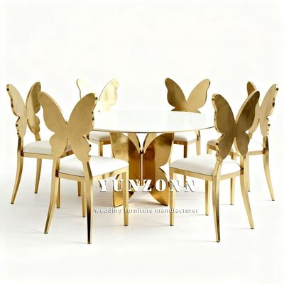 Sản xuất chuyên nghiệp Ghế ăn thoải mái bằng thép không gỉ hình bướm tựa lưng vàng Ghế đám cưới và sự kiện |
