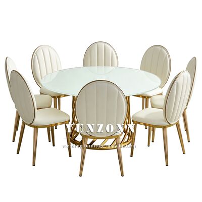 Q3: Chất liệu sản phẩm của bạn là gì? A3: Khung thép không gỉ bàn và ghế, kính cường lực trên bàn; đá cẩm thạch hoặc gỗ. Đệm ghế được làm bằng mút xốp mật độ cao và da hoặc vải chất lượng cao.