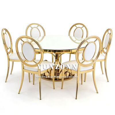 | Tên sản phẩm: | Đồ dùng đám cưới sang trọng Ghế ăn bằng thép không gỉ bền bỉ màu vàng cho các sự kiện và tiệc cưới ngoài trời |