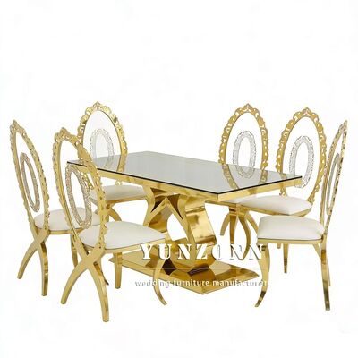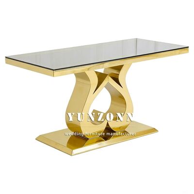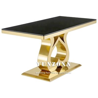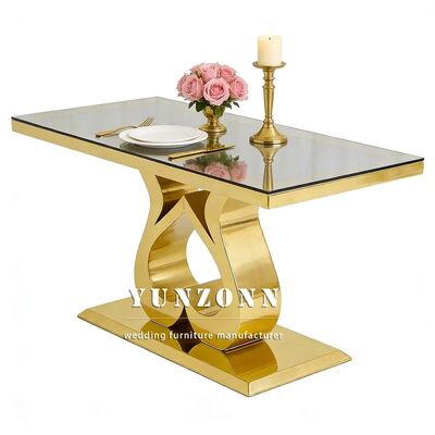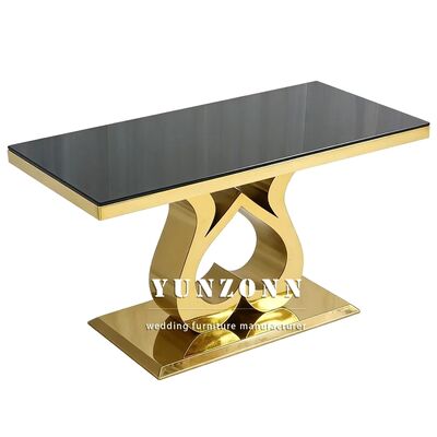 | Tên sản phẩm: | Khách sạn giá rẻ Các sự kiện Tiệc trang trí Đám cưới Cô dâu và chú rể Bàn ăn vàng Thép không gỉ Kính trên cùng hình chữ nhật Bàn ăn cưới |