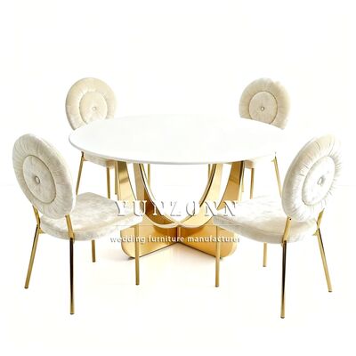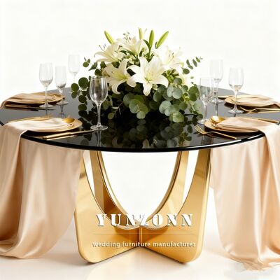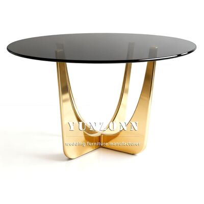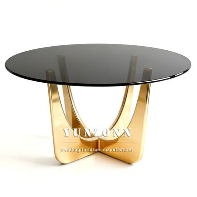 | Tên sản phẩm: | Bàn ăn mặt kính vàng thiết kế sự kiện đám cưới bằng thép không gỉ tròn sang trọng |