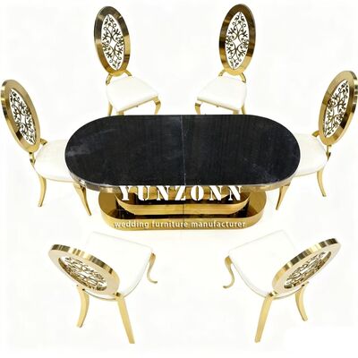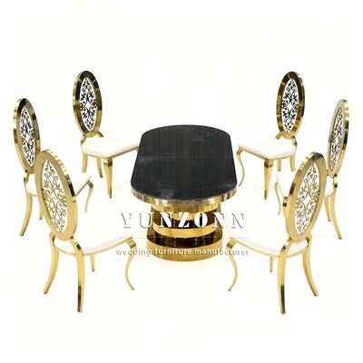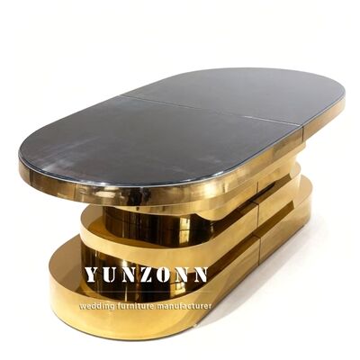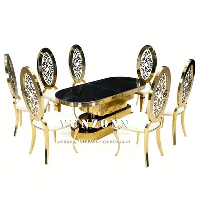 | Tên sản phẩm: | Đồ nội thất bữa tiệc vàng thép không gỉ kính gương trên bàn ăn cho đám cưới |