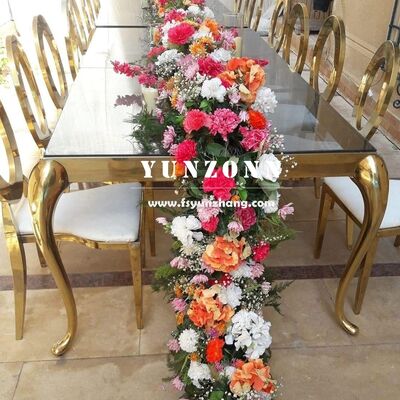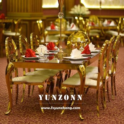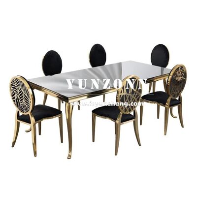 | Tên sản phẩm: | Bàn ăn hình chữ nhật hiện đại với khung thép không gỉ và kính trên cho các sự kiện ngoài trời cho đám cưới Khách sạn |