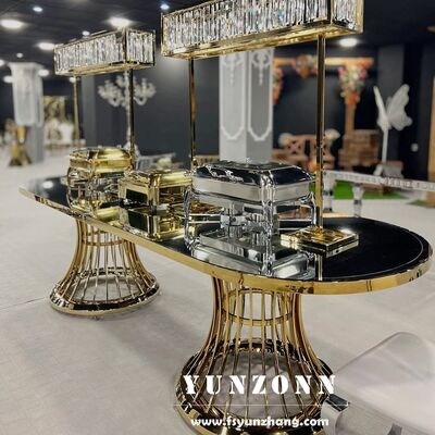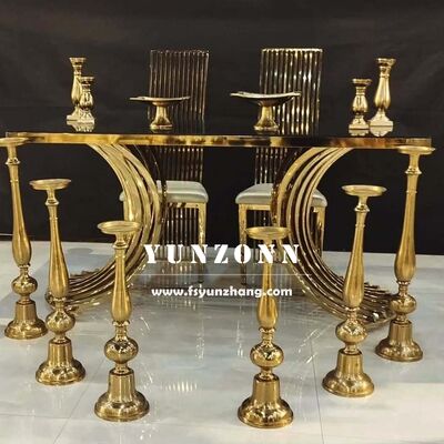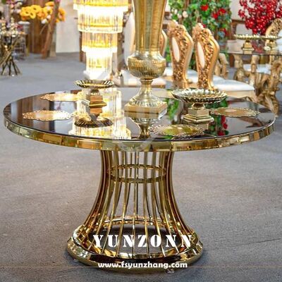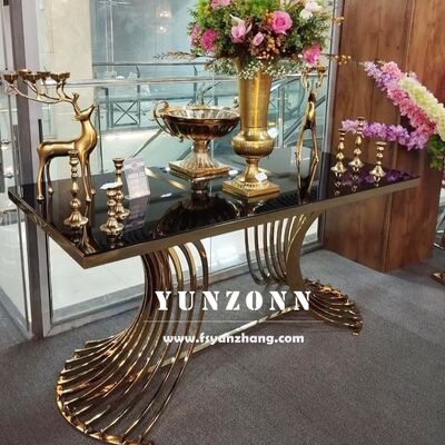 | Tên sản phẩm: | Chiếc bàn cưới bằng thép không gỉ bằng vàng sang trọng Chiếc bàn ăn bằng thủy tinh dùng trong khách sạn |