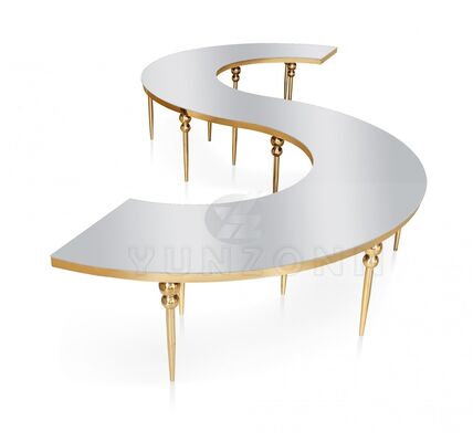 | Tên sản phẩm: | Bộ bàn ghế ăn hình chữ S hiện đại, nội thất khách sạn bằng kính kim loại cho sảnh ngoài trời |