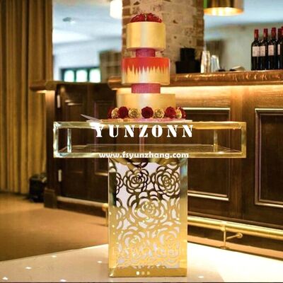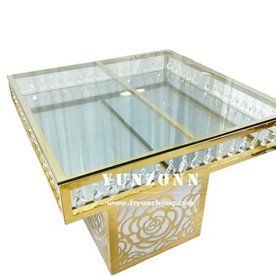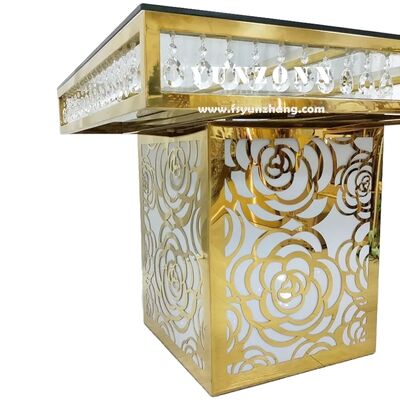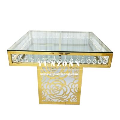 | Tên sản phẩm: | Đồ nội thất đám cưới sang trọng giá nhà máy thép không gỉ hình vuông đáy hoa hồng gương kính pha lê bánh bàn |