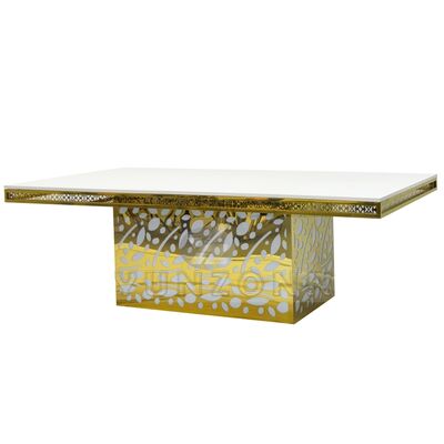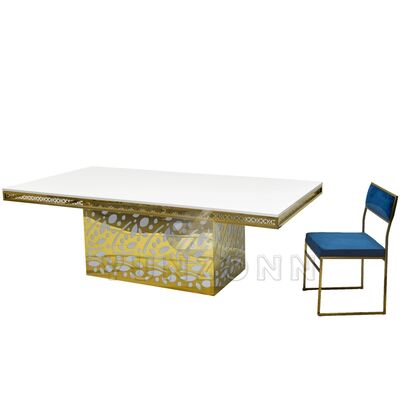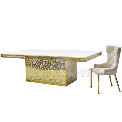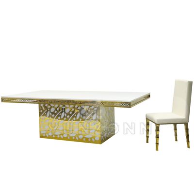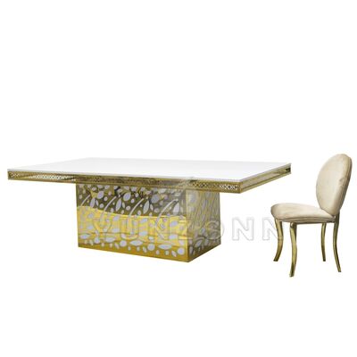 Bàn ăn bằng kính vàng, mặt dây chuyền pha lê, thép không gỉ, khách sạn sang trọng cho tiệc cưới, sự kiện, nhà hàng và tiệc |