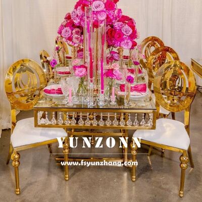 | Tên sản phẩm: | Yunzhang đồ nội thất vàng thép không gỉ Crystal tiệc ăn bàn tiệc cưới sang trọng bàn và ghế để bán |