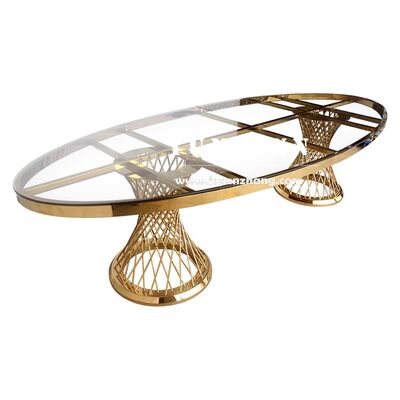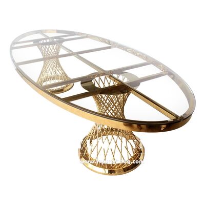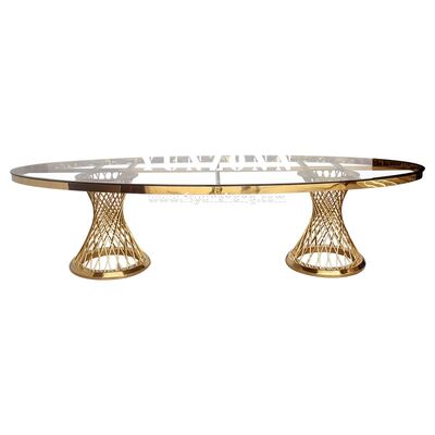 | Tên sản phẩm: | Bộ Bàn Ghế Oval Bằng Thép Không Gỉ Mạ Vàng Sang Trọng Dành Cho Tiệc Cưới và Nội Thất Khách Sạn |