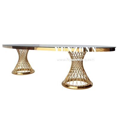 Bộ Bàn Ghế Oval Bằng Thép Không Gỉ Mạ Vàng Sang Trọng Dành Cho Tiệc Cưới và Nội Thất Khách Sạn