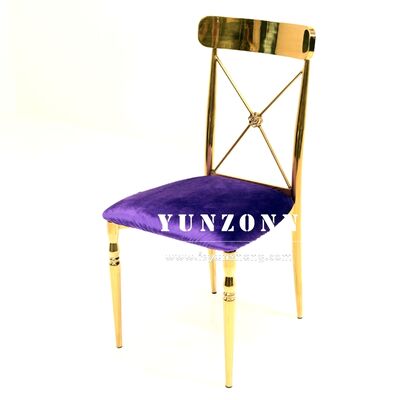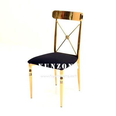 | Tên sản phẩm: | Ghế ăn lưng chữ thập bằng thép không gỉ mạ vàng hiện đại cho đám cưới, nhà ở, khách sạn, sự kiện, cho thuê, vải nhung với khung thép không gỉ |